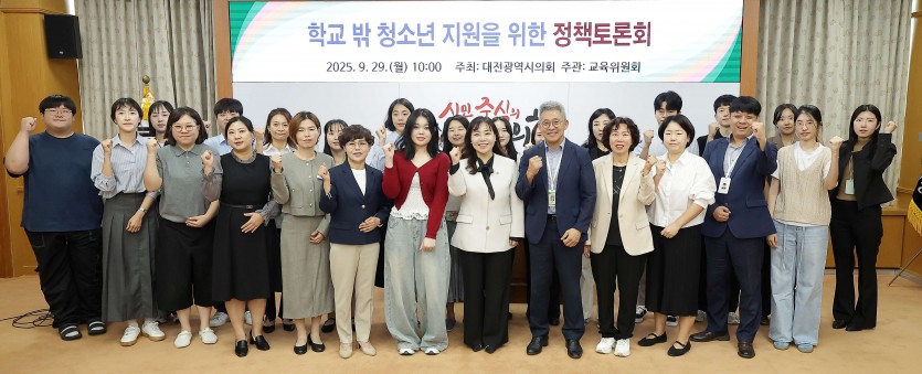 대전광역시학교밖청소년지원센터는, 2025년 9월 29일(월) 10:00 대전광역시의회 소통실(3층)에서 "학교 밖 청소년 지원을 위한 정책토론회"를 진행하였습니다.