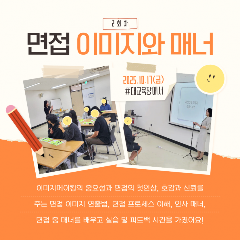 본 과정은 이미지 컨설팅과 모의훈련을 통한 긍정적인 자아상을 형성하고 실제적인 면접기술을 강화하기 위해 운영되었습니다. 특히, 대입 수시 면접을 준비하는 친구들은 희망 대학 및 학과에 맞춰 생활기록부를 기반으로 한 컨설팅이 진행되었습니다.