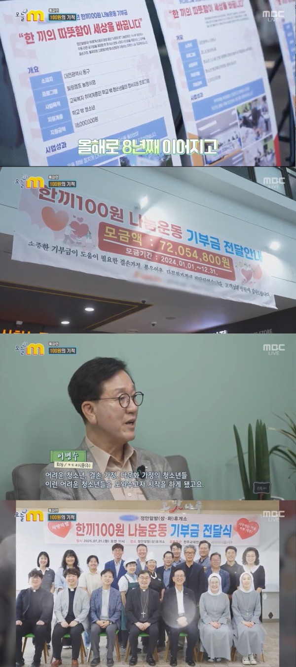 2025년 11월 12일(수), 오후 6시 5분에 방송되는 "대전MBC 오늘M" 톡파민 코너에 "100원의 기적"을 수행하는 (주)키다리식품 방송이 송출되었습니다. (주)키다리식품에서 운영하는 정안 알밤(상·하) 휴게소에서는, 2018년 부터 판매되는 한 끼 식사마다 100원씩(한 그릇 당 100원씩 기부) 자체적으로 적립하여 약 2억 4천만원의 기부금을 도움이 필요한 청소년들에게 지원하였고, 매년 900명이 넘는 청소년들에게 배움과 꿈의 기회를 주었습니다.