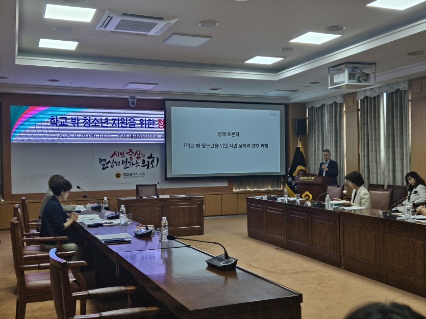 대전광역시학교밖청소년지원센터는, 2025년 9월 29일(월) 10:00 대전광역시의회 소통실(3층)에서 "학교 밖 청소년 지원을 위한 정책토론회"를 진행하였습니다.