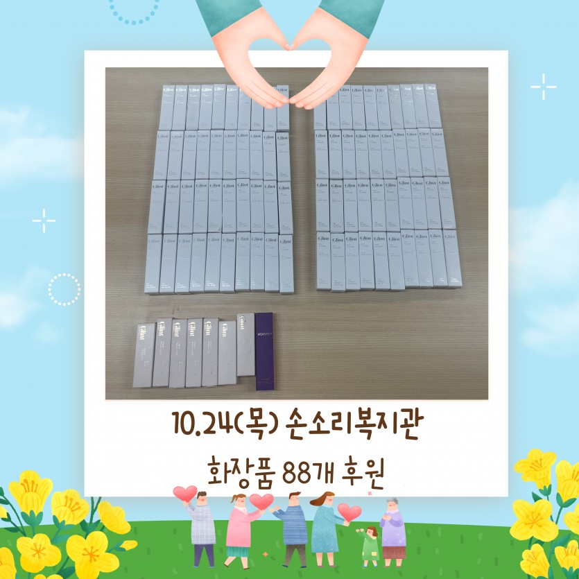 10월 23일(목) 대전광역시립손소리복지관 (관장 : 은종군)에서 대전시 꿈드림 청소년을 위해 화장품 88개를 후원해주셨습니다.